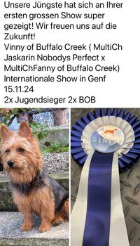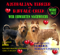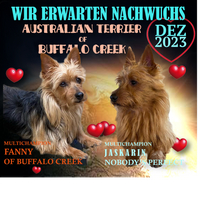 Die Weiterführung von "of BUFFALO CREEK" werde ich im Sinne von Peter gestalten. Gesunde, wesensfeste und menschenfreundliche Australian Terrier sollen auch in Zukunft von BUFFALO CREEK kommen und ihren neuen Besitzern treue Wegbegleiter sein.