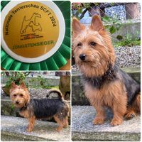 Australian Terrier Nachwuchshoffnung VINNY of Buffalo Creek wird in ihrer ersten Terrierclubshow gleich Jüngstensieger